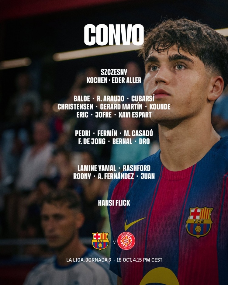 2025-10-19 00:18:10巴萨对阵赫罗纳名单:亚马尔、费尔明在列,莱万、费兰等多人缺席