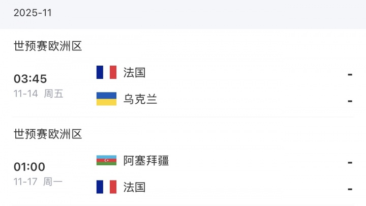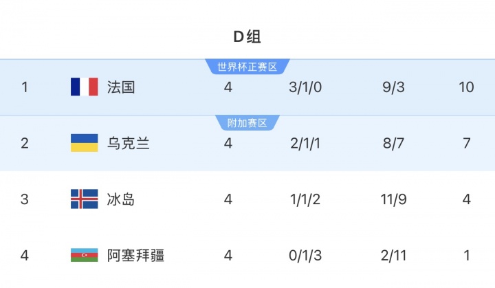 法国队目前在世预赛欧洲区D组排名榜首,本期国家队比赛日他们将对阵乌克兰和阿塞拜疆。