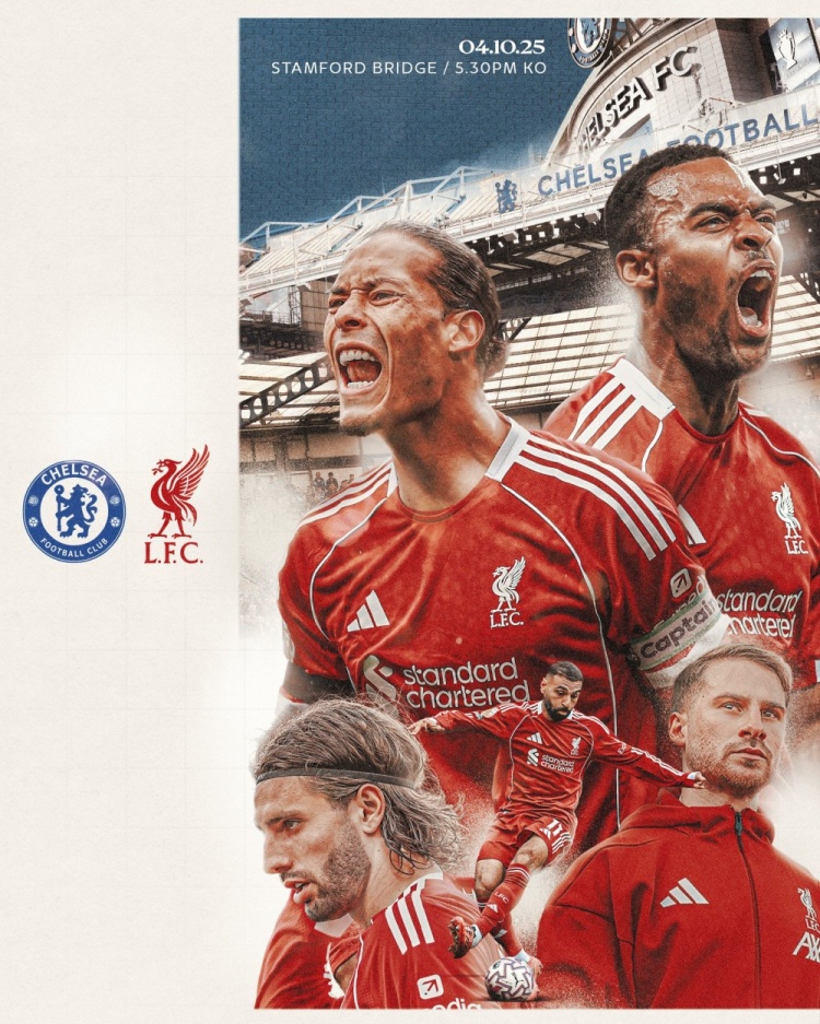 2025-10-04 16:03:00利物浦发布客战切尔西海报:范迪克、萨拉赫、赫拉芬贝赫出镜