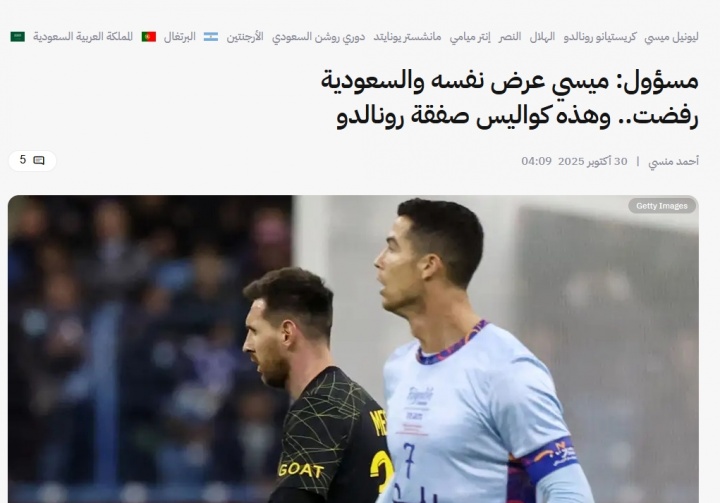2025-10-30 16:03:08沙特知名青训学院CEO:梅西曾主动请缨来沙特踢球 被体育部长拒了